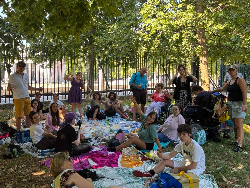 Un momento del picnic al Parco Sempione a Milano.